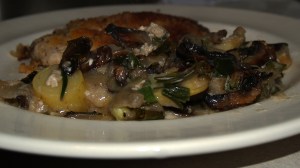 So, I used fingerlings instead of baking potatoes because we had them. I’m not sure if it was my “thinly sliced” not being thin enough, the oven not being properly calibrated (rentals, eh) or just the different texture of using fingerling potatoes but this dish took an hour and probably could have continued to bake for even softer potatoes. I used the rosemary and Chris thought it was too much. He may not be the rosemary fan I am but I would err on the side of lightly sprinkled in any event.