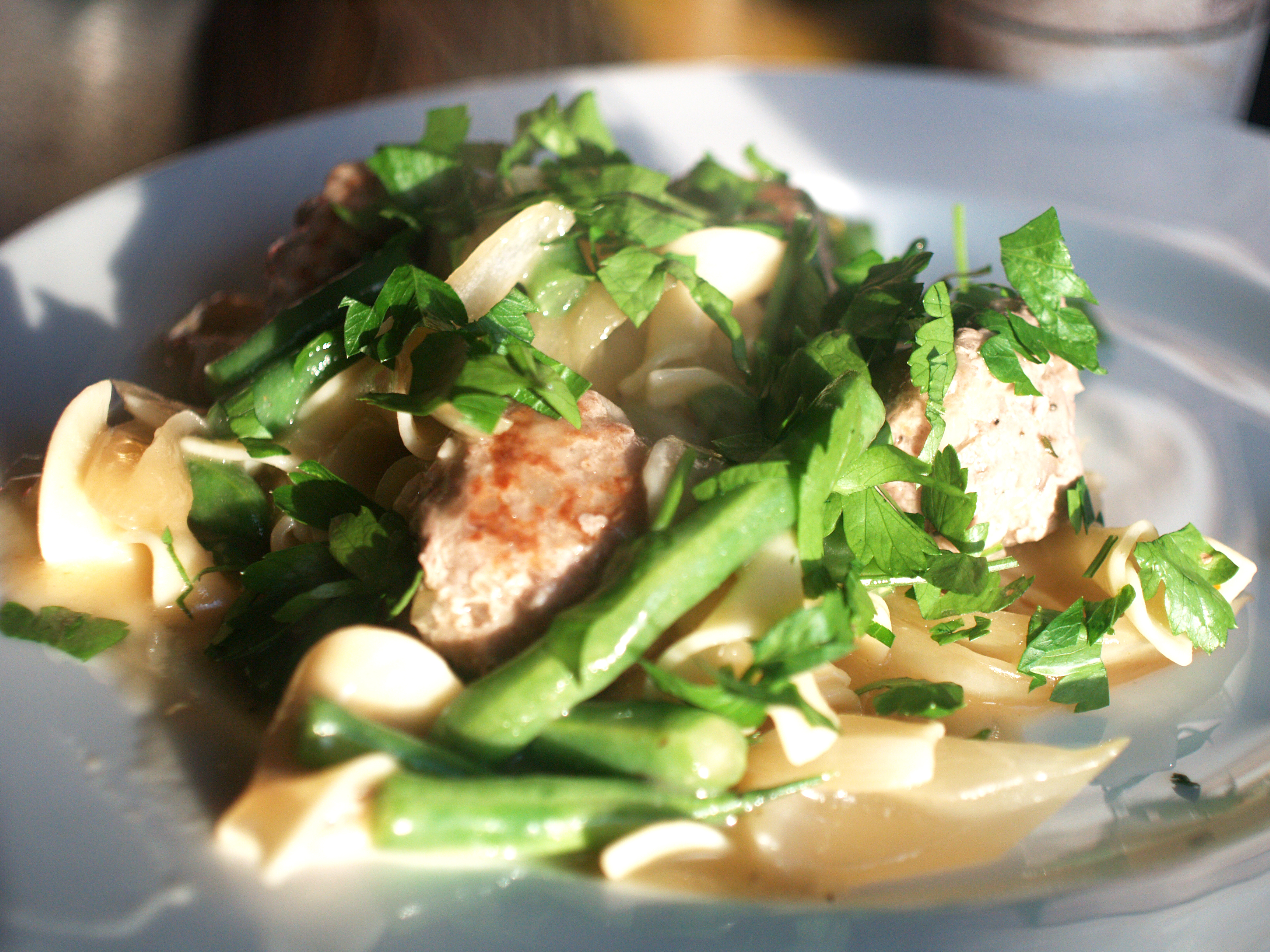 Turkey Meatballs with Green Beans & Noodles in Roux-ly Good Sauce