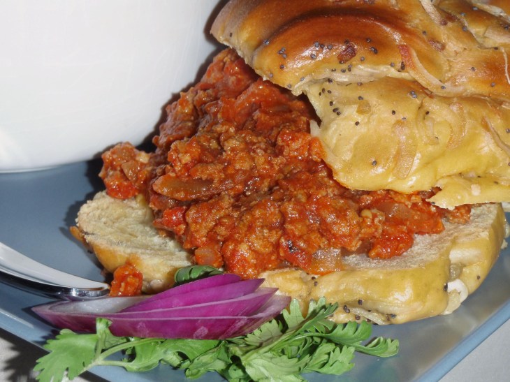 All week, we’ve been snacking on the tomato-bacon jam, either with cream cheese on a bagel or with goat cheese on sliced and toasted baguettes. I’ve also made the sloppy joes (subbing ground turkey for beef)
